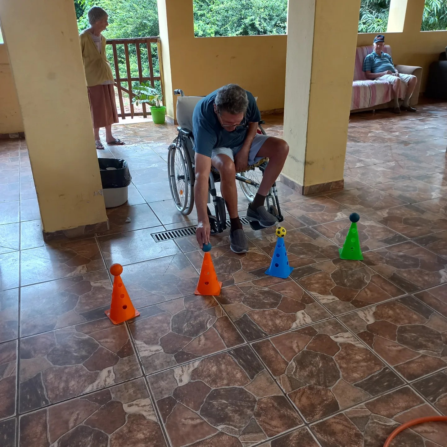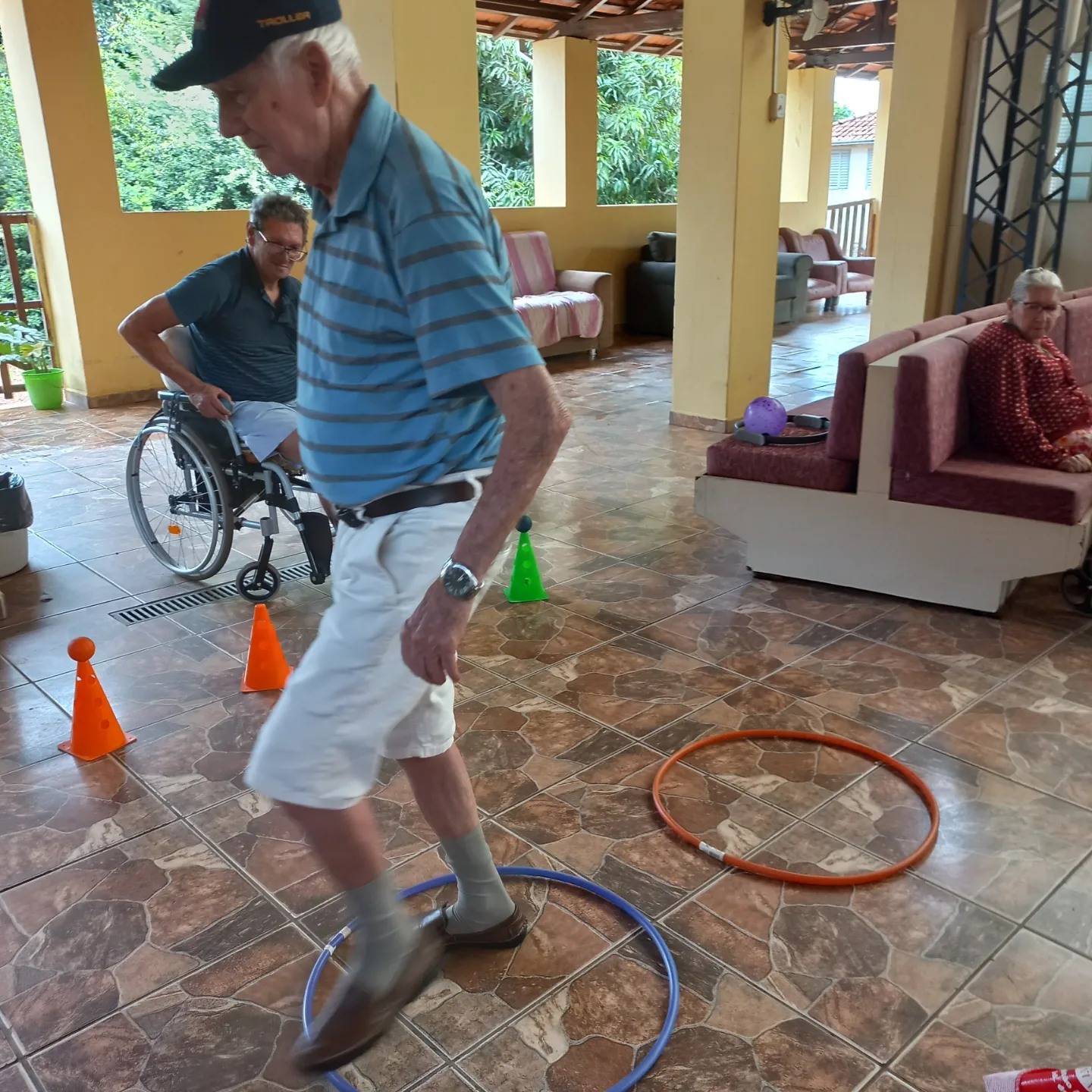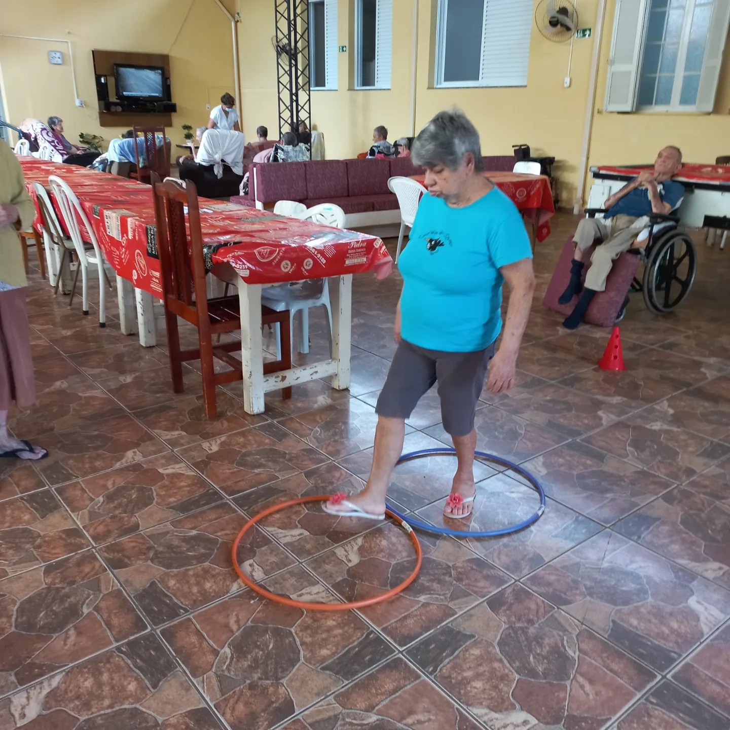 A Psicóloga Silmara e a Fisioterapeuta Karina montaram um circuito para que nossos moradores pudessem trabalhar a coordenação motora, a flexibilidade, a atenção e a concentração.