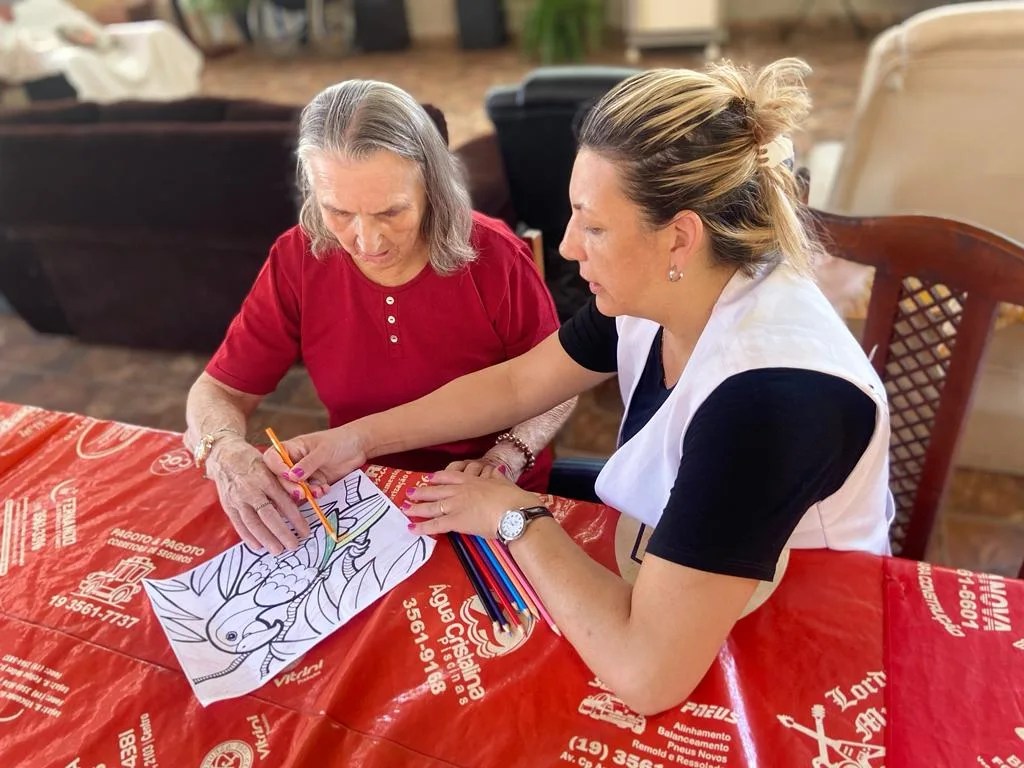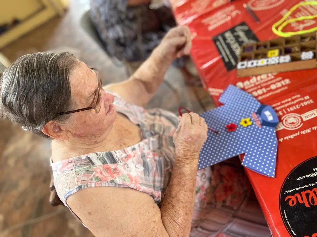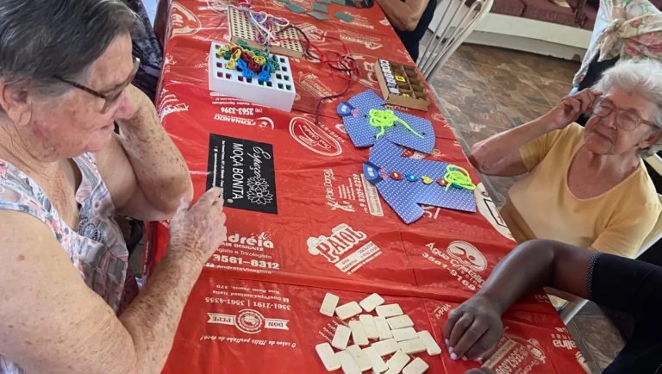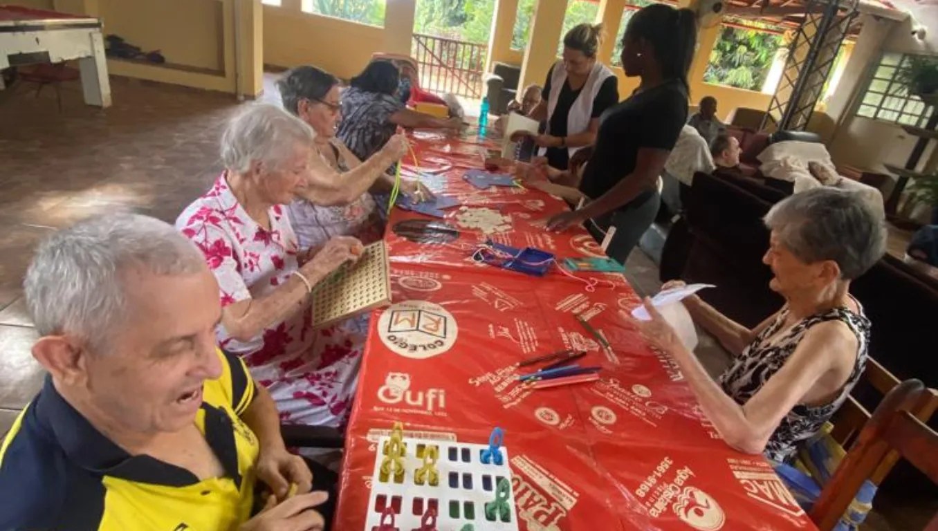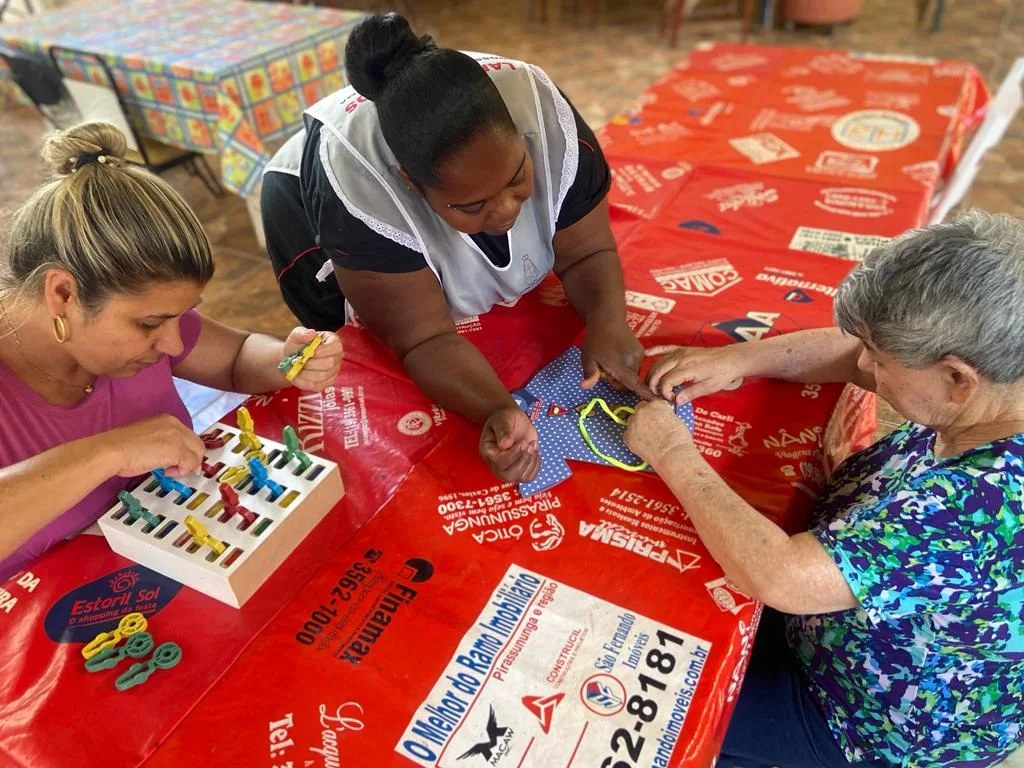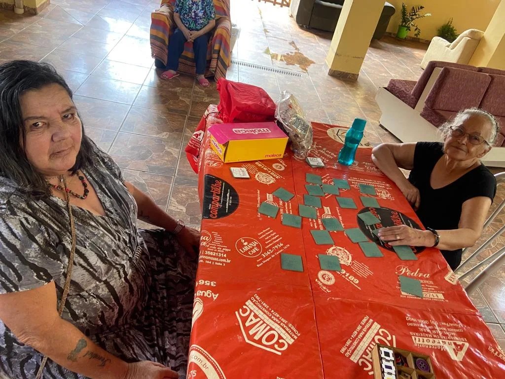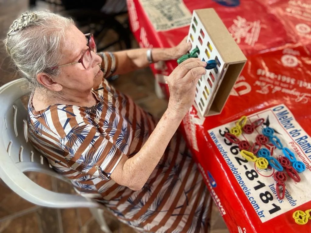 Através das atividades lúdicas realizadas dia 25/08/2023 com os moradores, trabalhamos a memória, com o reconhecimento de cores, as funções motoras com movimentos de pinça, atenção e concentração para realizar cada etapa dos jogos.