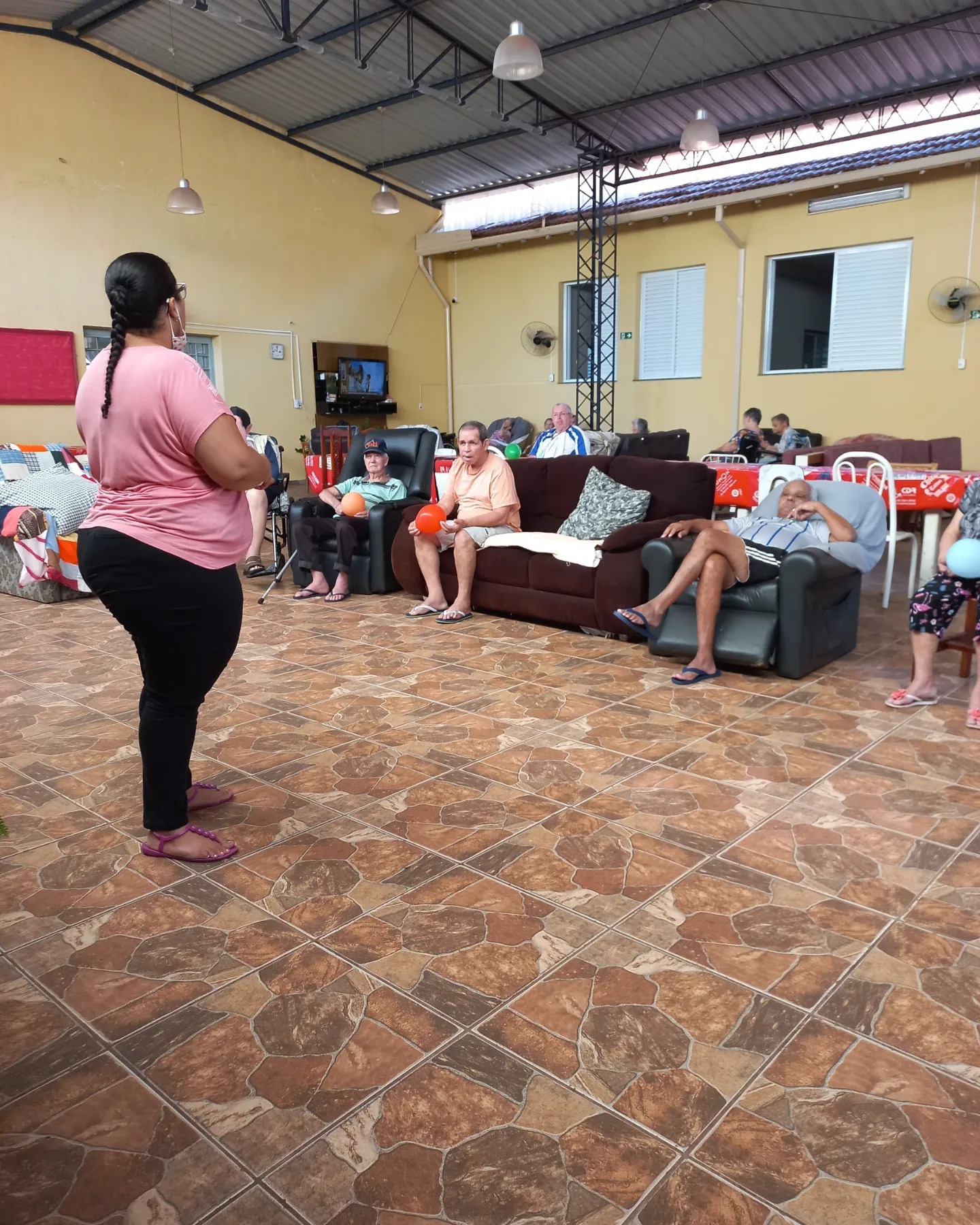 Atividade desenvolvida pela psicóloga Silmara, para trabalhar as habilidades de atenção, memória, concentração e socialização dos moradores.