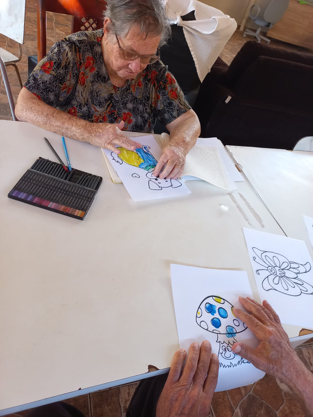 Quer seja mostrar uma pintura, apresentar um trabalho artesanal pronto, se sentir bem cantando ou dançando, há um aumento da confiança, melhora no humor e elevação da autoestima. Essas sensações facilitam a socialização dos idosos no meio familiar ou grupal.